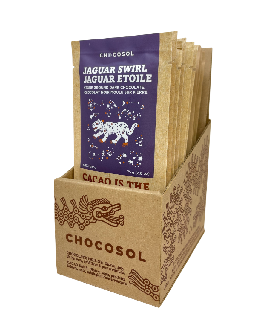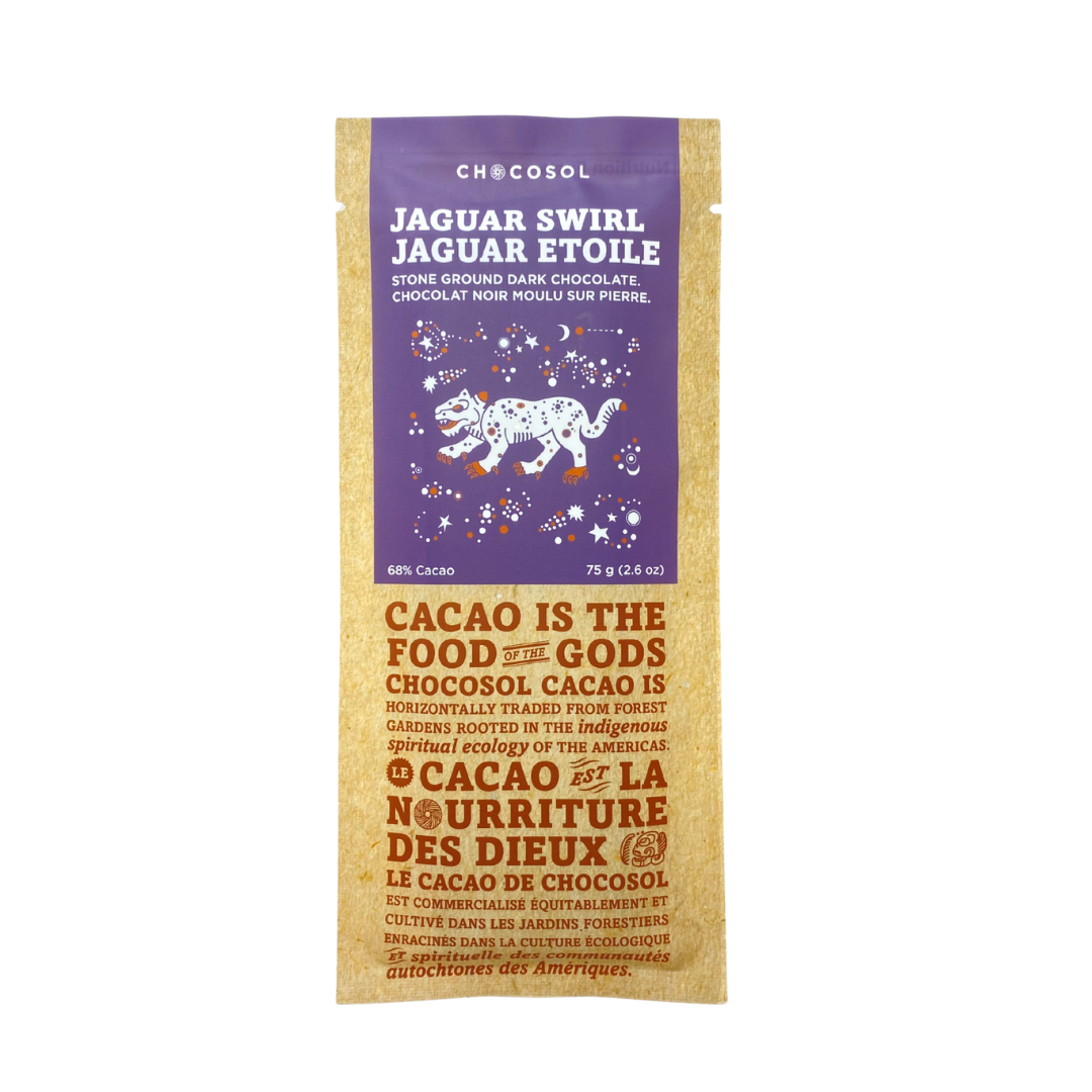 Our Jaguar Swirl blends red and white cacao beans into a non-dairy “milk” chocolate of the highest calibre. The full blend allows the high-protein jaguar chocolate to create an incredibly buttery and rich flavour when paired with our sweet 65% Vanilla Sea Salt base.